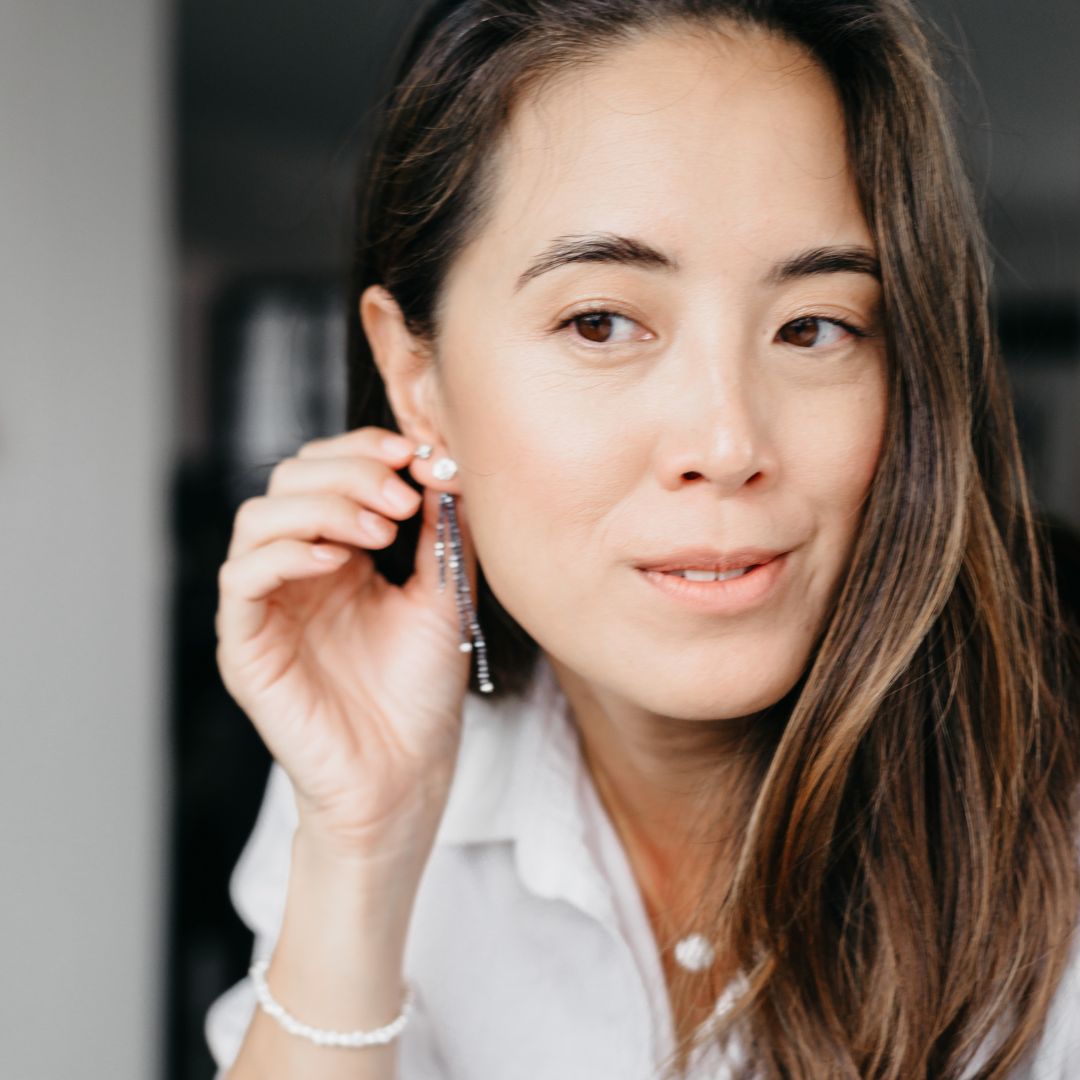 Our earrings jackets are sold as a pair. Please note earring jackets DO NOT INCLUDE stud earrings. These are shown for illustrative purposes only. The earring jackets can be worn with any stud earrings you already have, or add on a pair here.